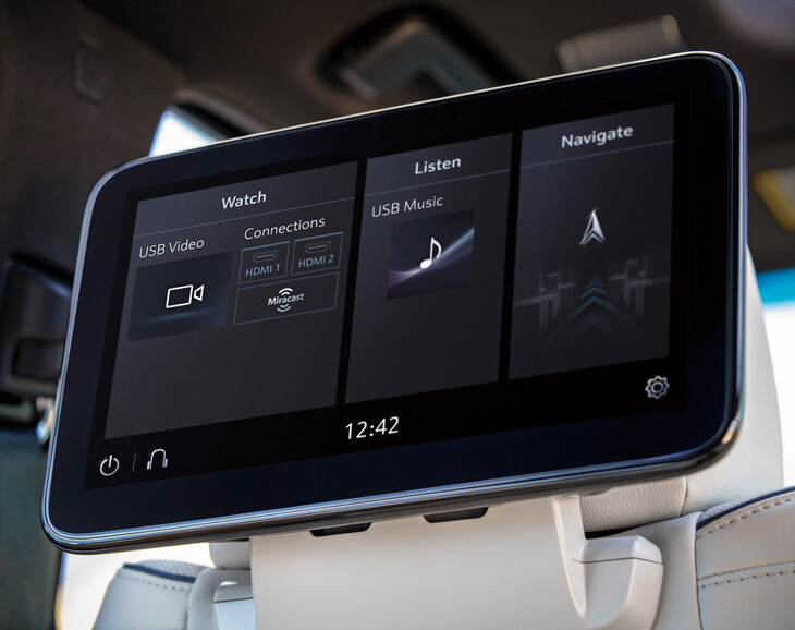 SportとPlatinumuの前席バックレストには、12.6インチの独立タッチHDディスプレイを2台装備。2列目シートから操作することで、HDMIやUSB入力でゲームや音楽、映像などのストリーミング再生を楽しむことができる。