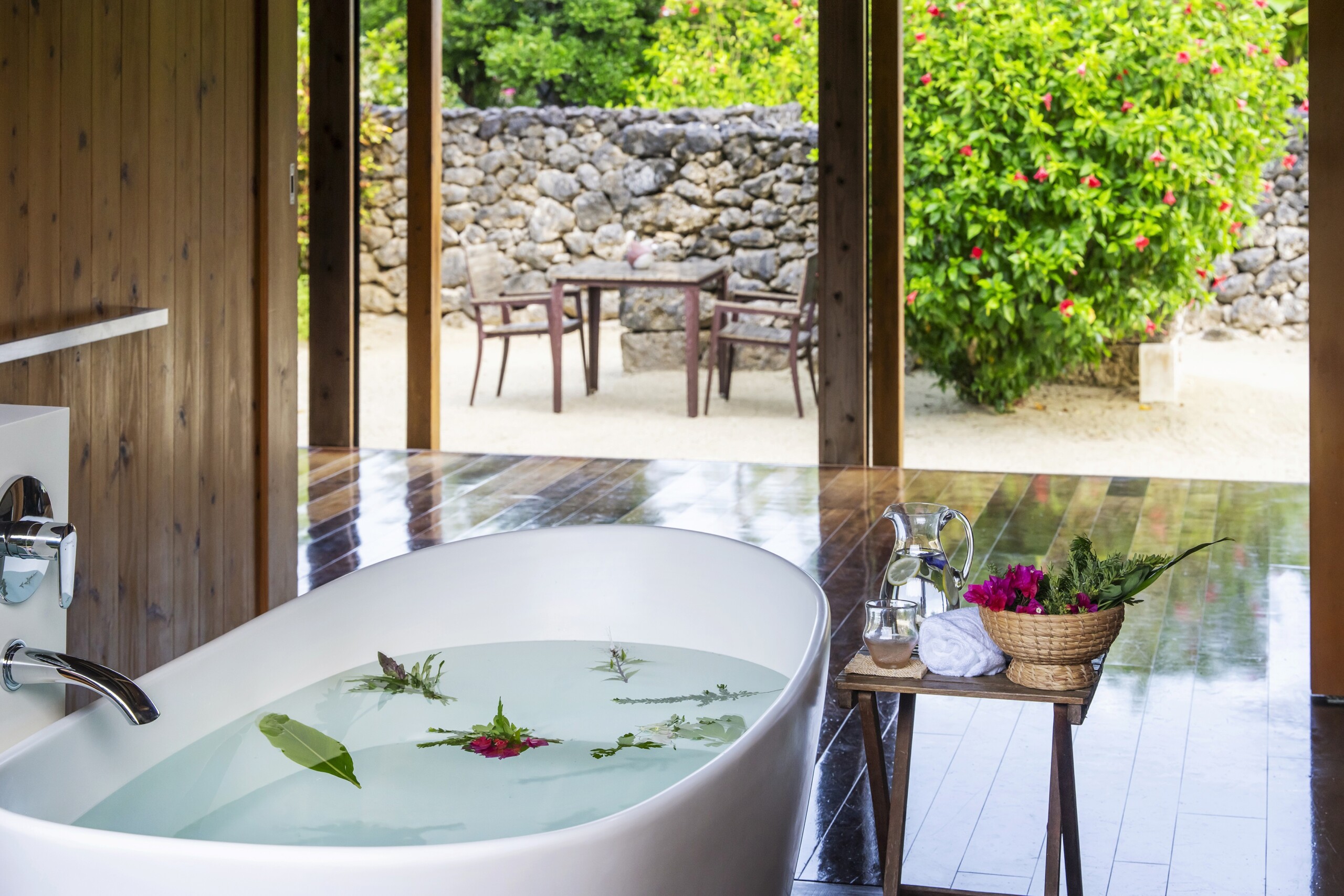 スパでは、長命草やフーチバーを米粉に練りこんで蒸し上げた「命ぐさ玉」を使用し、身体を温めながらトリートメントを体験。冬の寒さで縮こまった身体や、寒暖差の激しい春の不調で乱れた身体を温め、心と体の緊張をゆっくりとほぐします。また、心地よい南風(ぱいかじ)が吹き抜ける客室も癒やしの空間です。湯船へ豊かな香りを放つ命草を浮かべ、風の音に耳を澄ませるバスタイムは、この上なく贅沢なひとときに。 その他にも、一年を通して利用できる加温式の屋外プールで、水面に身体を任せる浮遊浴を楽しめます。