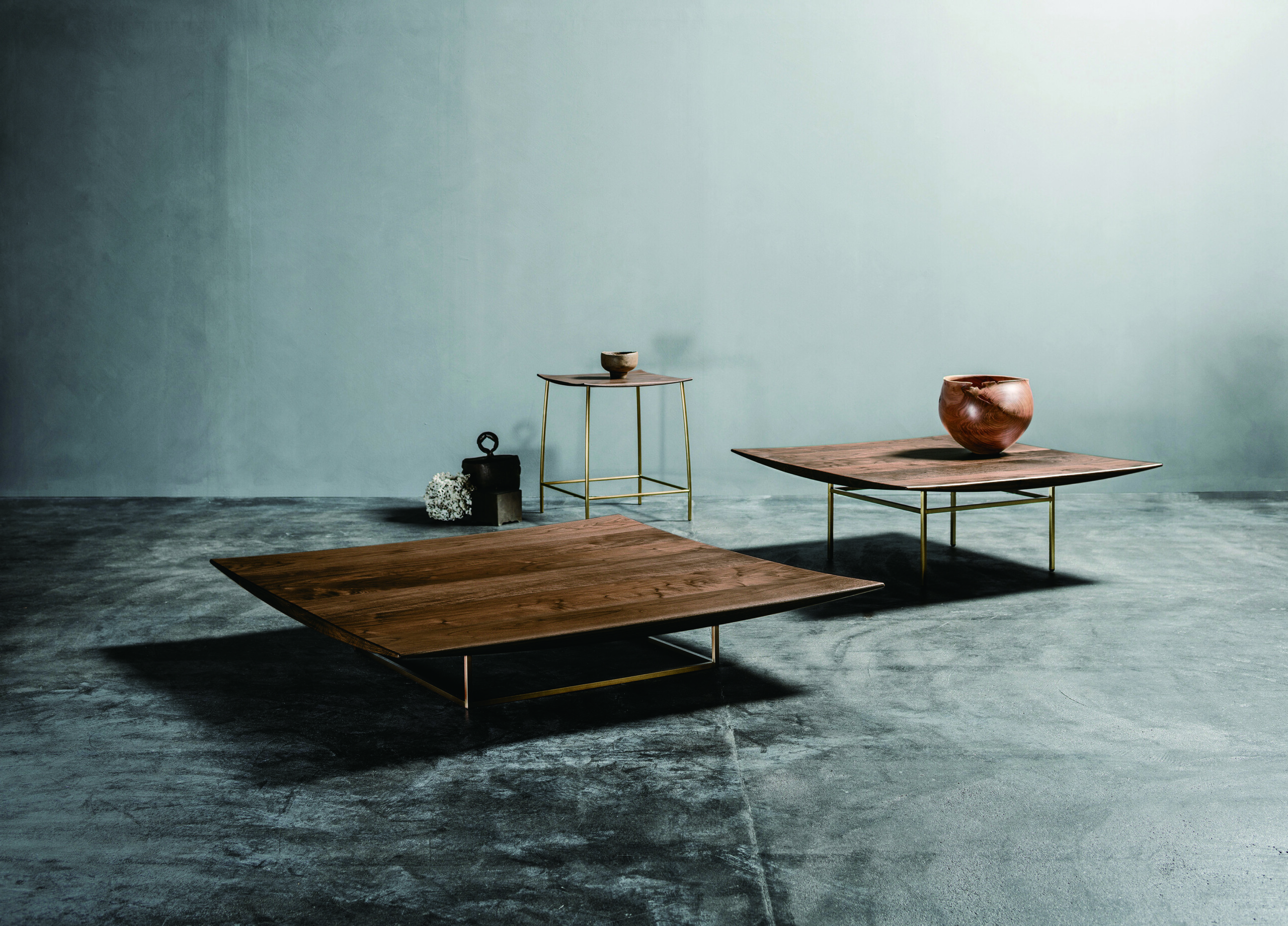 まるで浮いているかのような軽やかな天板のフォルムは神社仏閣の反り屋根から着想。日本の伝統的な様式を内包させながらモダンな表情を見せる“IBIZA FORTE(イビサフォルテ)リビングテーブル”は、リッツウェルのアイコン的存在。