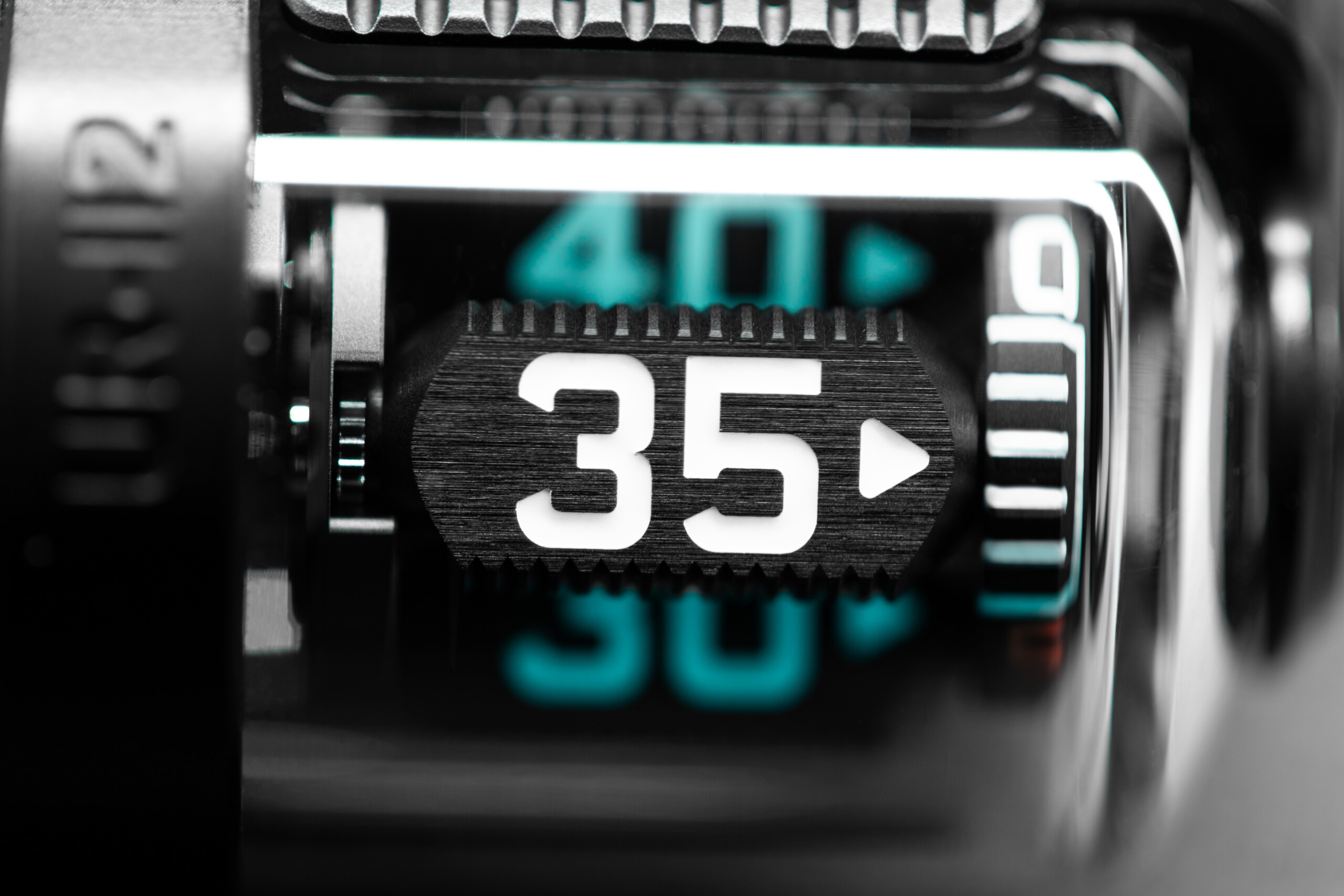 最大の特徴は、プリズムによる時間表示。時間と分それぞれの表示は、透明なシリンダーの下で動く三角形のプリズムに表示される。左側はデジタルのジャンプアワー表示で、12個の数字には彫刻が施され、その中にはスーパールミノバが埋め込まれている。右側は、同じシステムで分を表示する。1分単位ではなく、5分単位で回転するドラッグミニッツ表示。フロントに配置されたサファイアウィンドウの中で、時間と分が立体的に切り替わっていく様子は、従来の“針で読む時計”とはまったく異なる体験をもたらす。